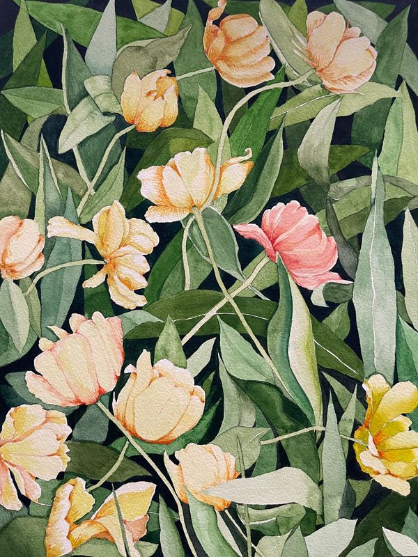 Tulips at Washington Square Park, 16" x 12", watercolor on Arches 300 lb paper, $1000